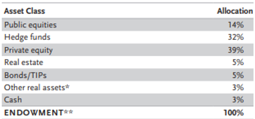 Dado que la universidad depende de las distribuciones del fondo patrimonial para financiar una parte sustancial de sus operaciones, cerca del 40%, la orientación del fondo hacia rendimientos sólidos ha sido moderada por la necesidad de estabilidad presupuestaria. De hecho, el rendimiento de la cartera lo justifican en tres factores principales: nivel de riesgo de la cartera, asignación de activos y selección de gestores.